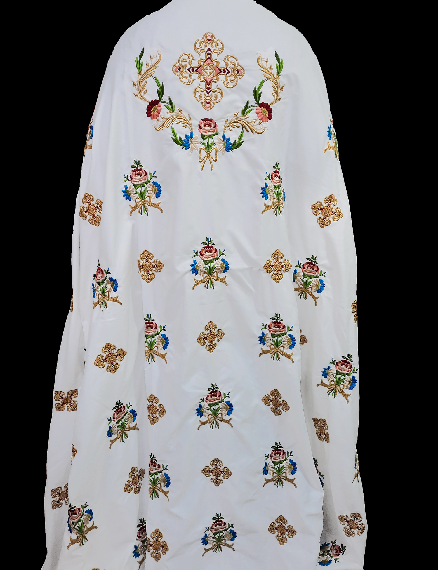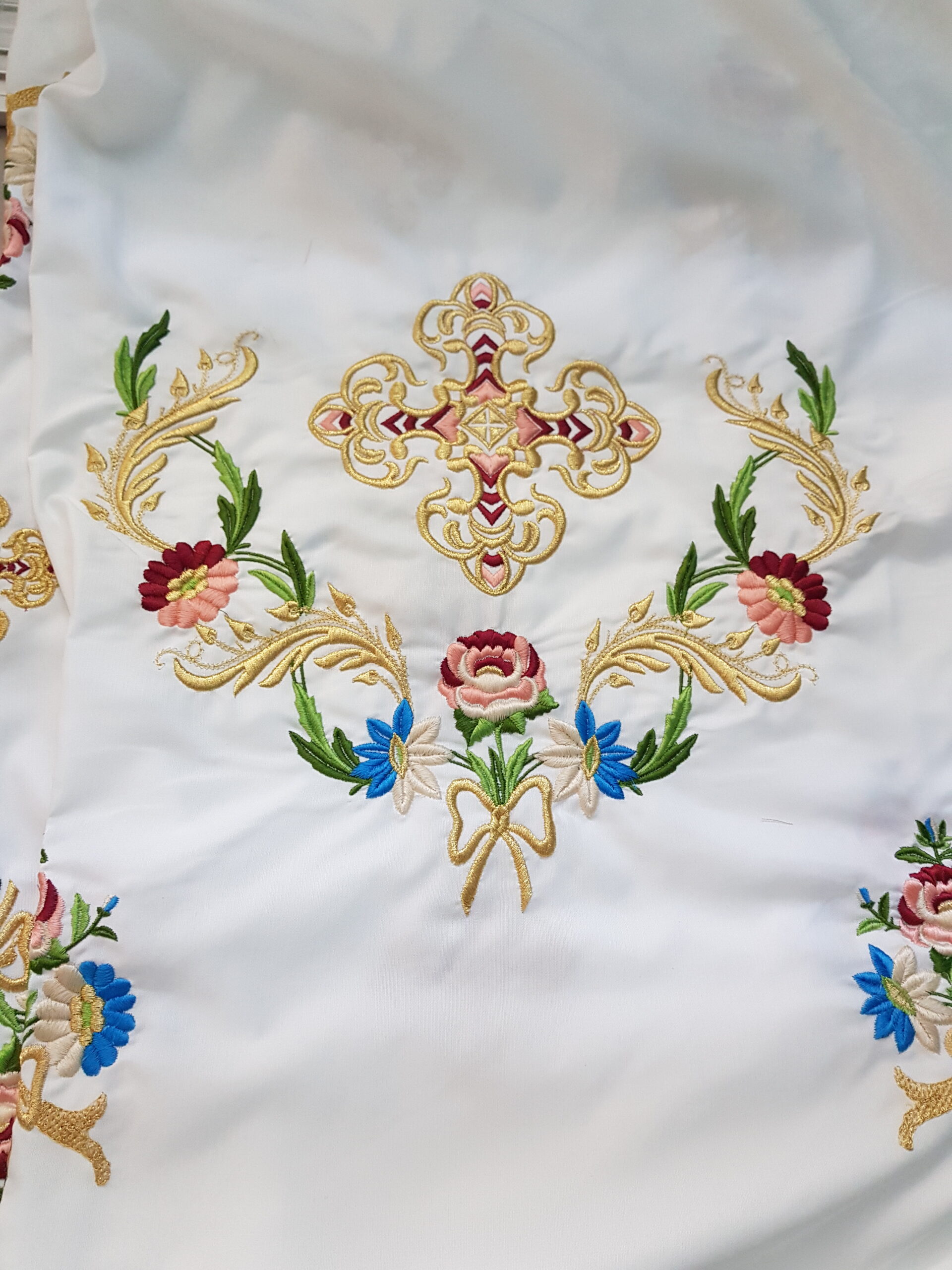 Η κεντημένη στολή αποτελείται από ένα ύφασμα όπου συμπεριλαμβάνεται το φελόνι, πετραχήλι, επιμάνικα, ζώνη και επιγονάτιο.
