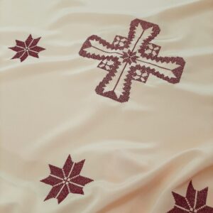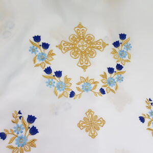 Η κεντημένη στολή αποτελείται από ένα ύφασμα όπου συμπεριλαμβάνεται το φελόνι, πετραχήλι, επιμάνικα, ζώνη και επιγονάτιο.
