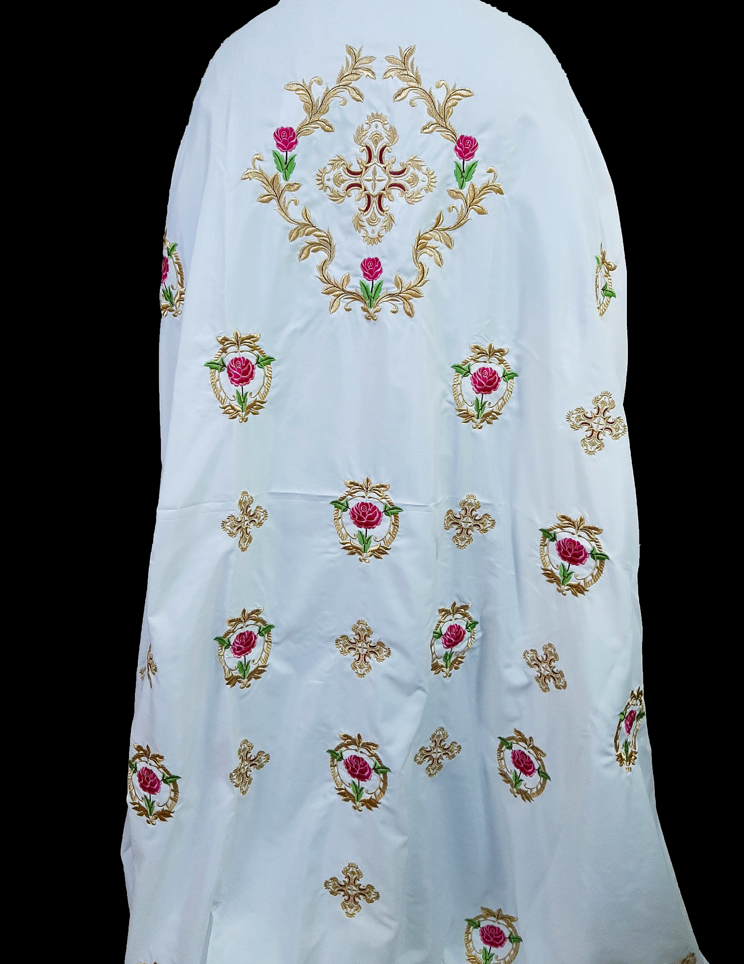 Η κεντημένη στολή αποτελείται από ένα ύφασμα όπου συμπεριλαμβάνεται το φελόνι, πετραχήλι, επιμάνικα, ζώνη και επιγονάτιο.